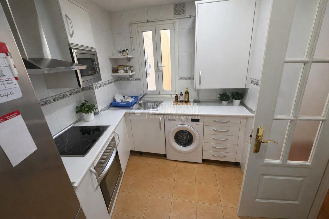 Descubre este acogedor piso con ascensor y sin barreras arquitectónicas en el corazón del municipio de Madrid, ideal para quienes buscan comodidad y funcionalidad. Con una superficie de 70 m², esta vivienda totalmente exterior destaca por su luminosidad y su excelente distribución. Cuenta con dos habitaciones, un salón amplio con acceso a terraza, al igual que la segunda habitación, lo que aporta una agradable entrada de luz natural. Dispone además de cocina independiente, baño completo y pasillo que conecta las distintas estancias.